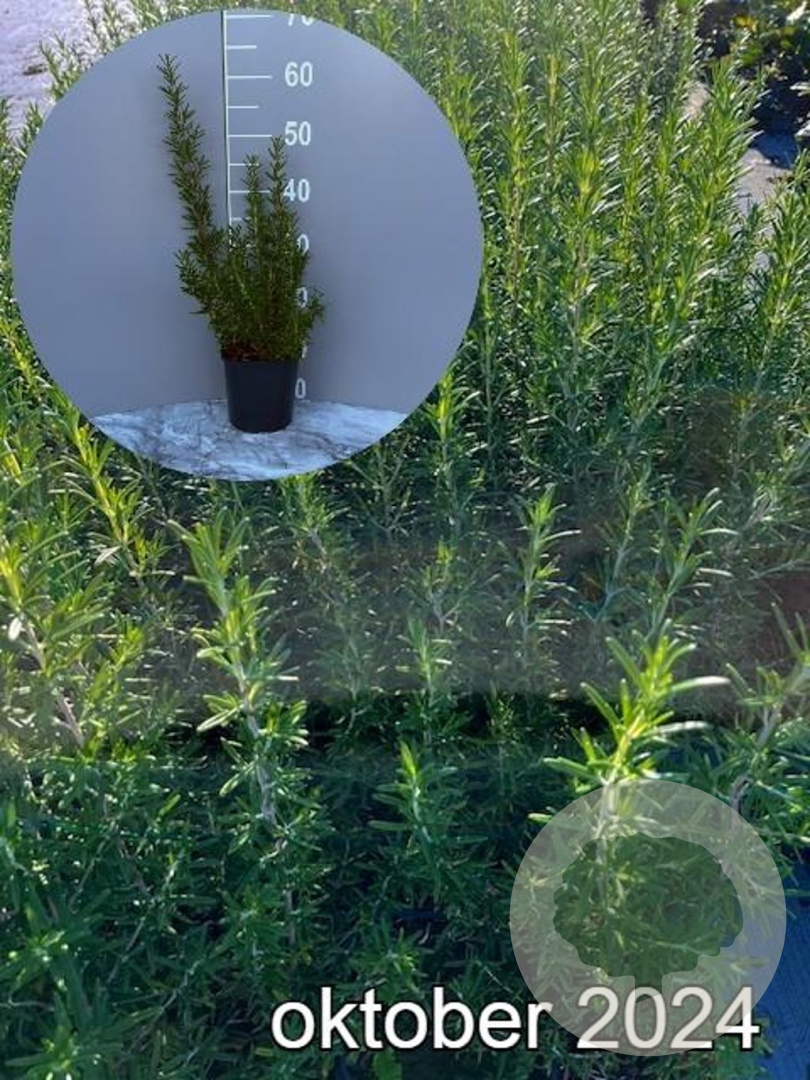 | Toelichting | Rozemarijn is een aromatische kruidenplant met blauwe tot paarse bloemen in mei-juni. De plant wordt ongeveer 100 cm hoog en gedijt goed in zonnige, goed doorlatende grond. |