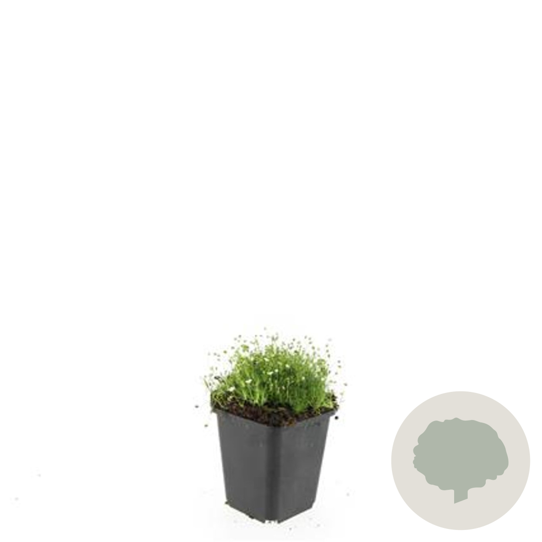 | Toelichting | Iers mos is een laagblijvende bodembedekker met witte bloemen in mei en juni. Het groene blad vormt een dicht tapijt en gedijt goed in zon en halfschaduw op zand- of neutrale grond. |