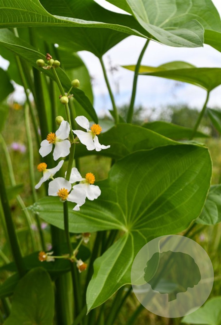 | Toelichting | Pijlkruid (Sagittaria latifolia) is een prachtige moerasplant met witte bloemen die bloeien van juni tot augustus. Deze plant gedijt goed in zonnige tot halfschaduwrijke gebieden met zandige, lemige of neutrale grond. |
