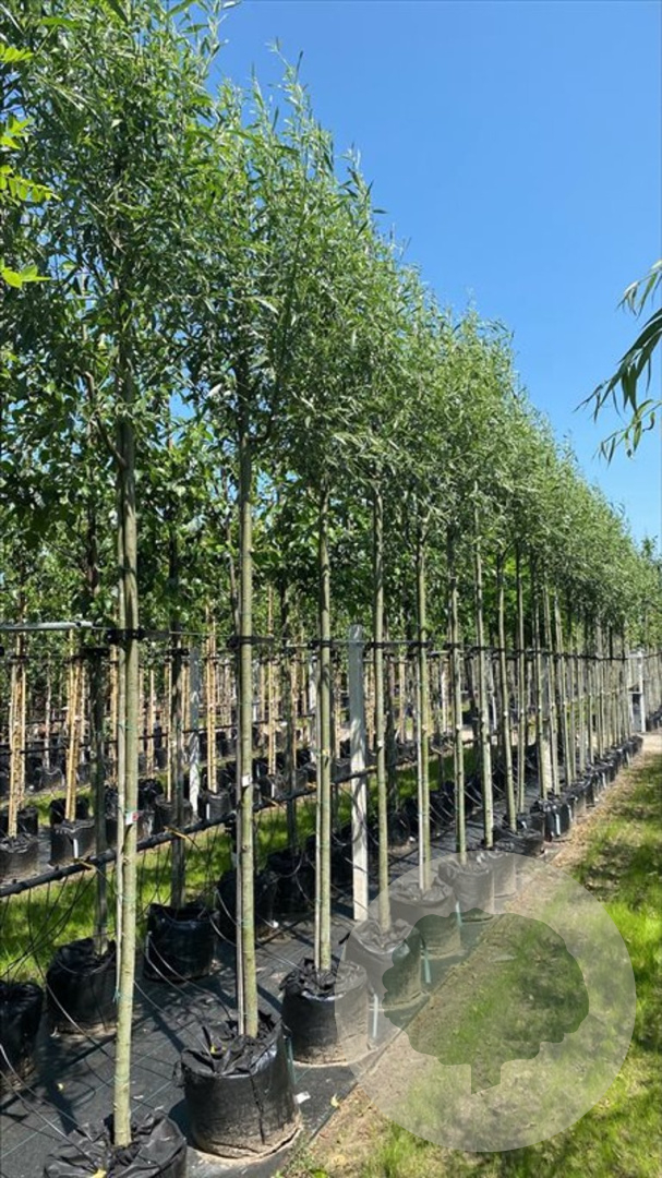 Salix alba 'Belders' (schietwilg) kopen? Hoogstam solitairboom 12-14 cm stamomtrek, containergekweekt. Snelgroeiende boom met sierlijk blad en goudgele herfstkleur, ideaal voor vochtige standplaatsen.