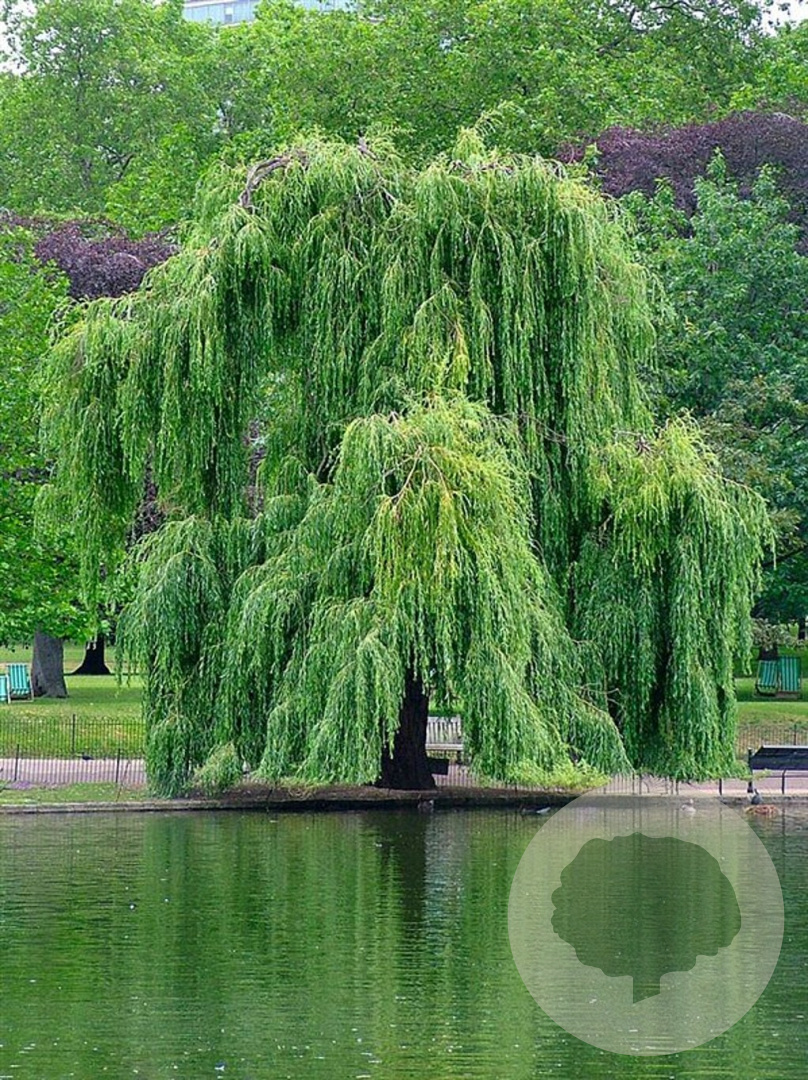 | Toelichting | De Treurwilg (Salix babylonica 'Pendula') is een imposante boom met hangende takken en groene bladeren. In het voorjaar bloeit hij met gele katjes. Deze boom gedijt het beste op voedselrijke en vochtige grond en kan een hoogte bereiken van 800 cm. |