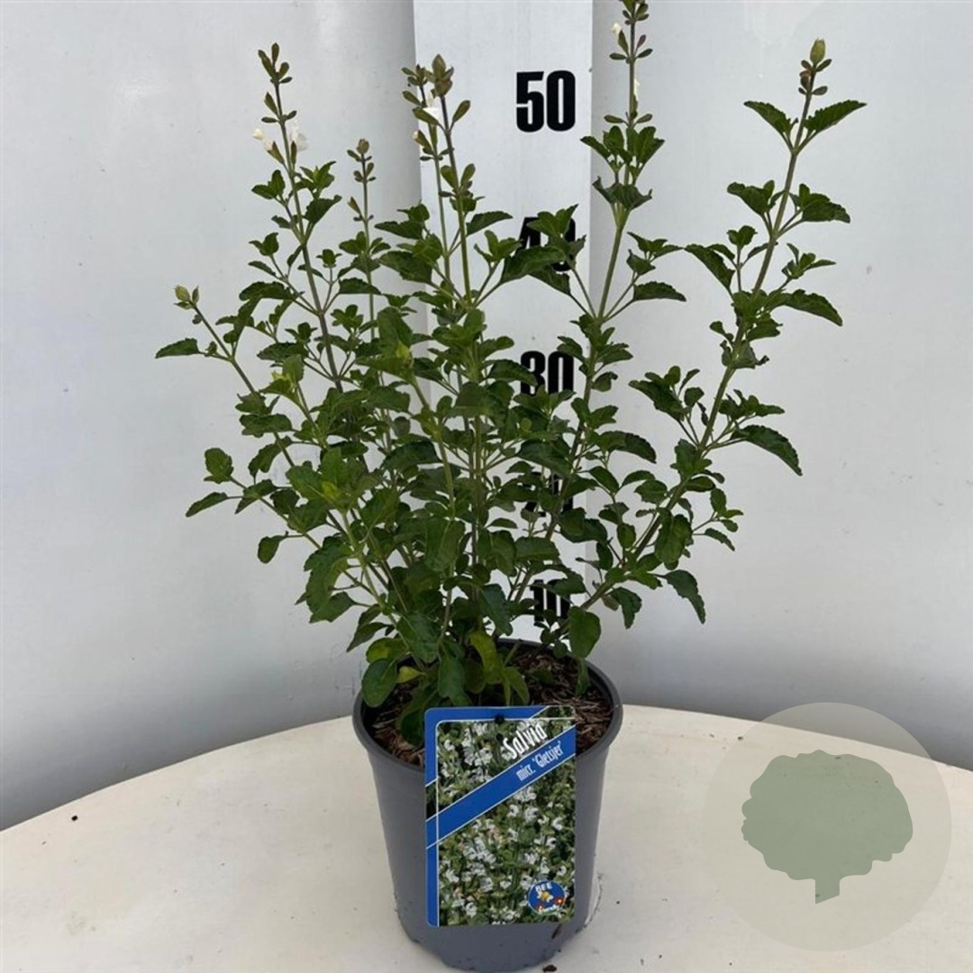 | Toelichting | Salie 'Gletsjer' is een compacte plant met paarse bloemen en groen blad. Bloeiend van juni tot augustus, perfect voor zonnige plekken in neutrale, goede tuingrond. Ideaal voor borders en potten. |