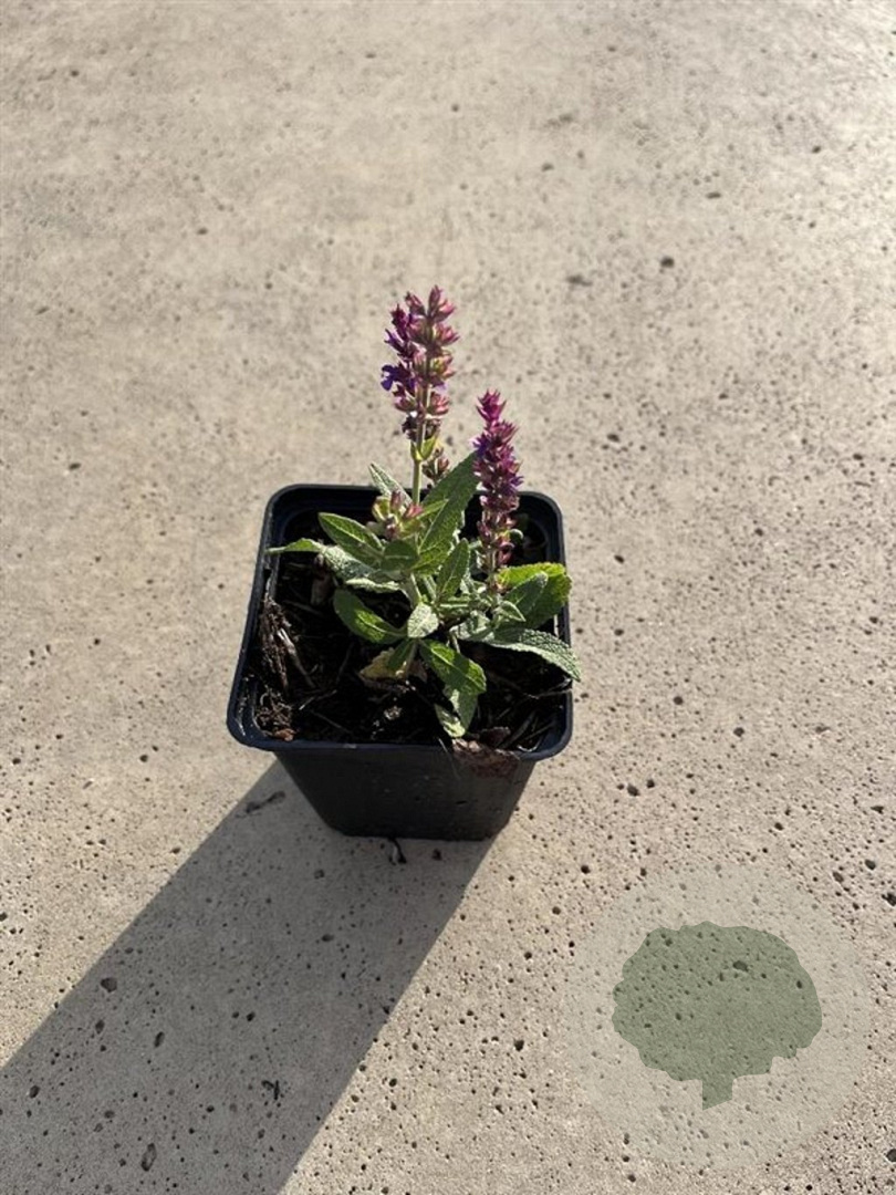 | Toelichting | Salie (Salvia nem. 'Ostfriesland') is een prachtige vaste plant met paarse bloemen die bloeit van juni tot september. Deze plant wordt ongeveer 50 cm hoog en gedijt het beste in de zon op neutrale grond. Perfect voor een kleurrijke border! |