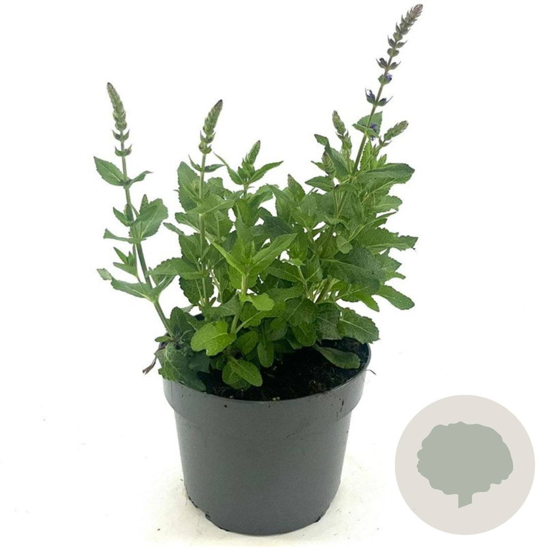 | Toelichting | Salie (Salvia nem. 'Ostfriesland') is een prachtige vaste plant met paarse bloemen die bloeit van juni tot september. Deze plant wordt ongeveer 50 cm hoog en gedijt het beste in de zon op neutrale grond. Perfect voor een kleurrijke border! |