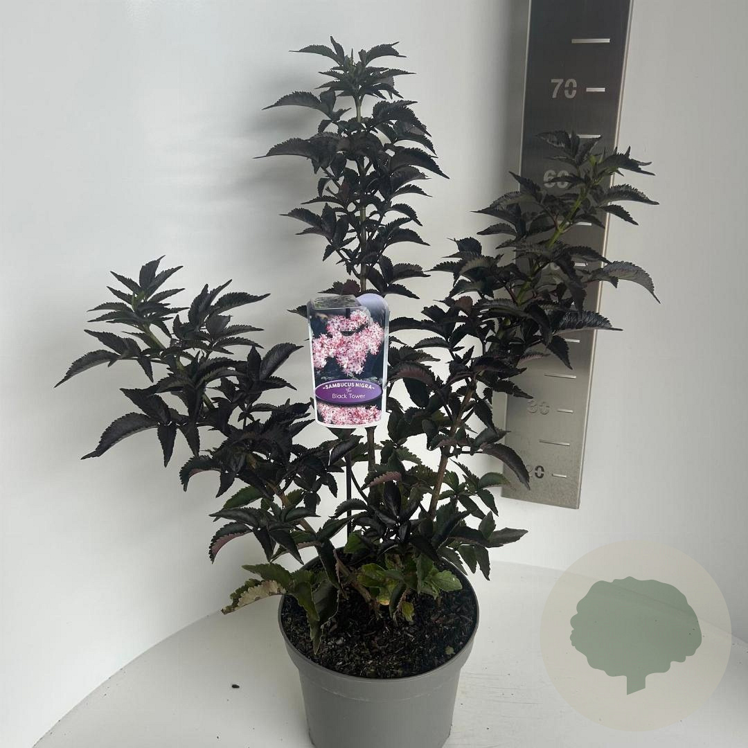| Toelichting | De Vlier Black Tower (Sambucus nigra) is een opvallende, verticaal groeiende vlier met crèmekleurige bloemen in mei-juni. Het donkergroene blad en de compacte groei maken het een perfecte aanvulling voor zonnige tot halfschaduwrijke tuinen op diverse grondsoorten. |