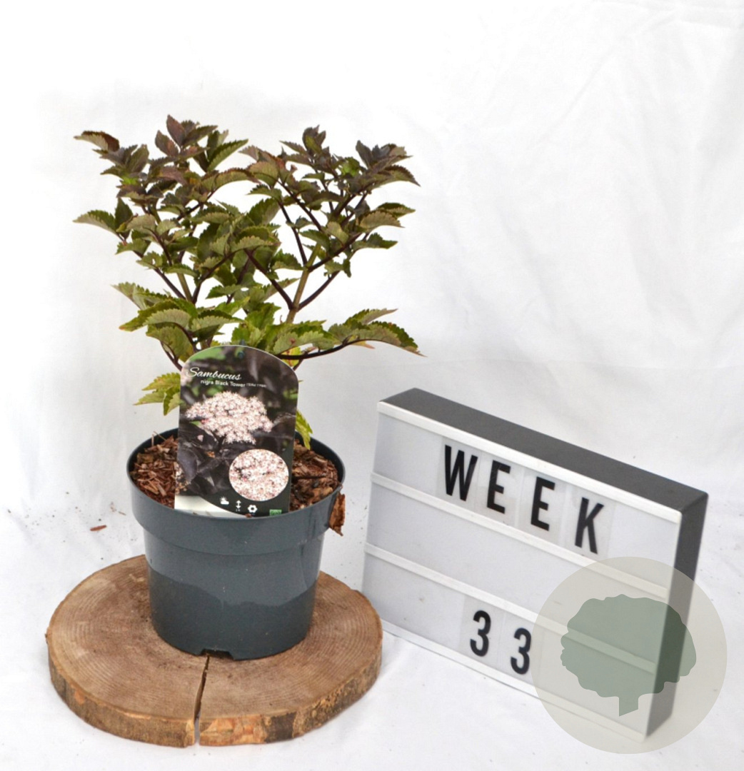 | Toelichting | De Vlier Black Tower (Sambucus nigra) is een opvallende, verticaal groeiende vlier met crèmekleurige bloemen in mei-juni. Het donkergroene blad en de compacte groei maken het een perfecte aanvulling voor zonnige tot halfschaduwrijke tuinen op diverse grondsoorten. |