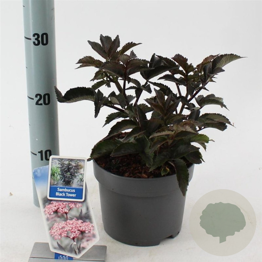 | Toelichting | De Vlier Black Tower (Sambucus nigra) is een opvallende, verticaal groeiende vlier met crèmekleurige bloemen in mei-juni. Het donkergroene blad en de compacte groei maken het een perfecte aanvulling voor zonnige tot halfschaduwrijke tuinen op diverse grondsoorten. |