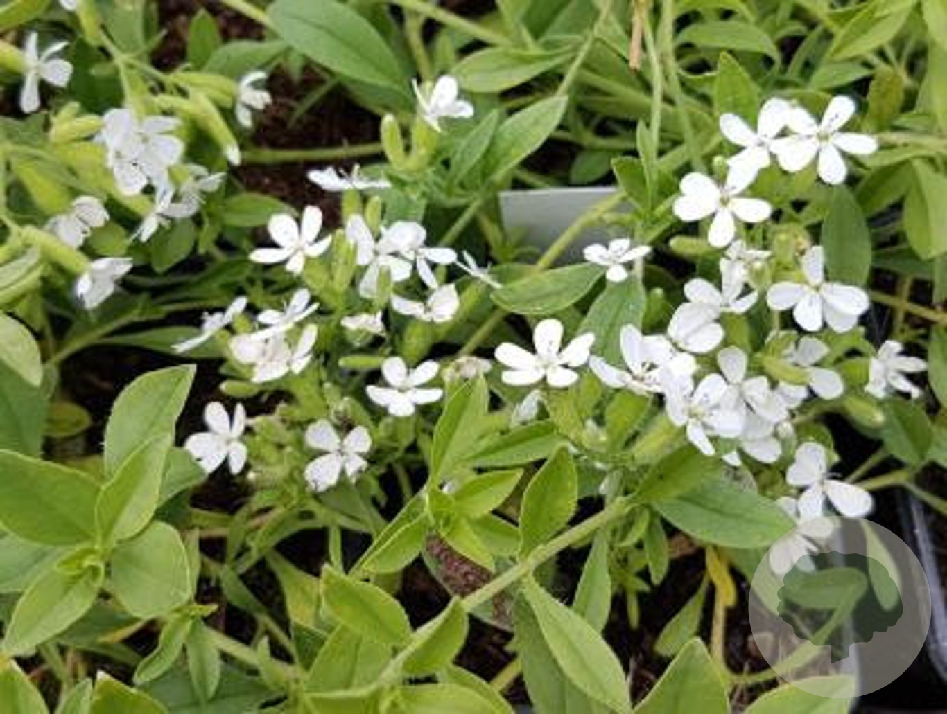 ToelichtingZeepkruid (Saponaria ocymoides 'Alba') is een laagblijvende vaste plant met witte bloemen. Deze plant bloeit van mei tot juli en staat graag in de zon. Zeepkruid gedijt goed in zandgrond, neutrale grond of goede tuingrond.