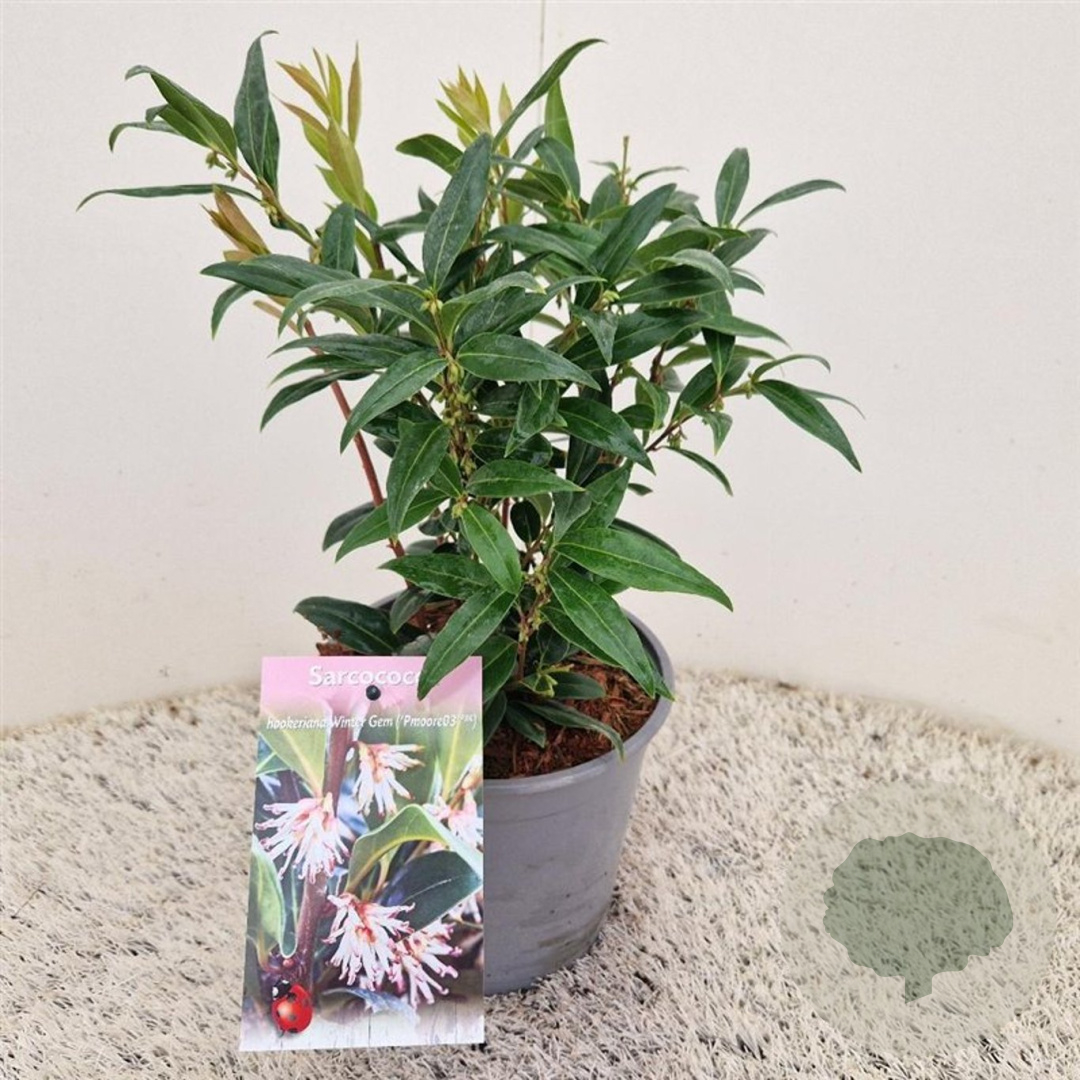 | Toelichting | De Vleesbes Winter Gem is een compacte struik met donkergroen blad en geurende witte bloemen in de winter. Perfect voor schaduwrijke plekken met zure en humusrijke grond. Bereikt een hoogte van 40 cm en bloeit van januari tot maart. |