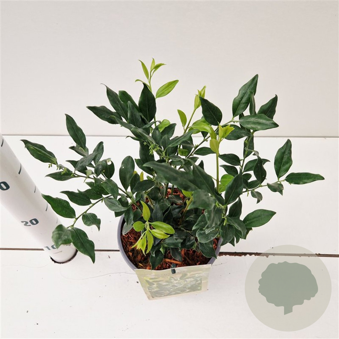 | Toelichting | De Sarcococca ruscifolia, ook wel Vleesbes genoemd, is een groenblijvende struik met donkergroen blad en geurende witte bloemen in de winter en het vroege voorjaar. Ideaal voor schaduwrijke plekken met zure en humusrijke grond. |