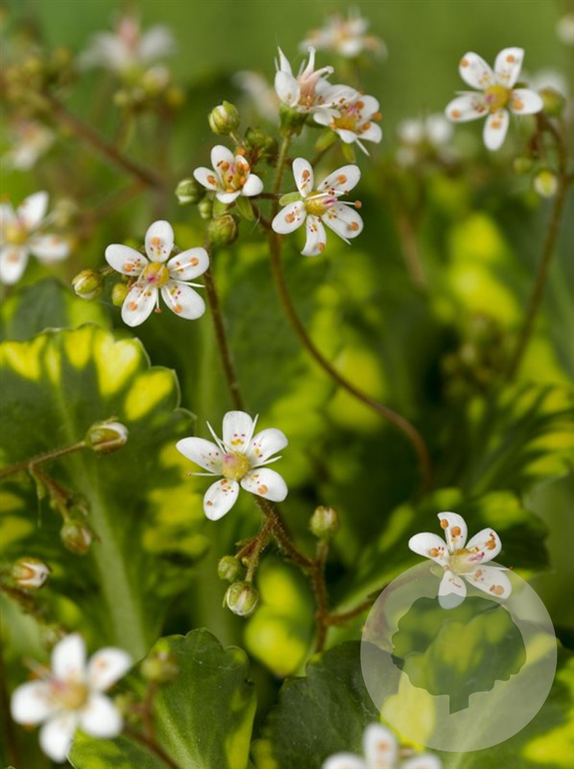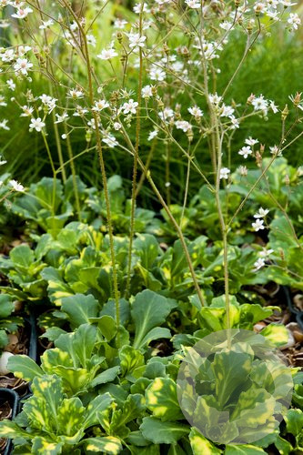 ToelichtingDe Saxifraga u. 'Variegata', ook wel bekend als Steenbreek, is een prachtige bodembedekker met witte en roze bloemen in de periode mei-juni. De plant gedijt goed in zonnige tot halfschaduwrijke omgevingen op zandgrond, lichte klei of neutrale grond.