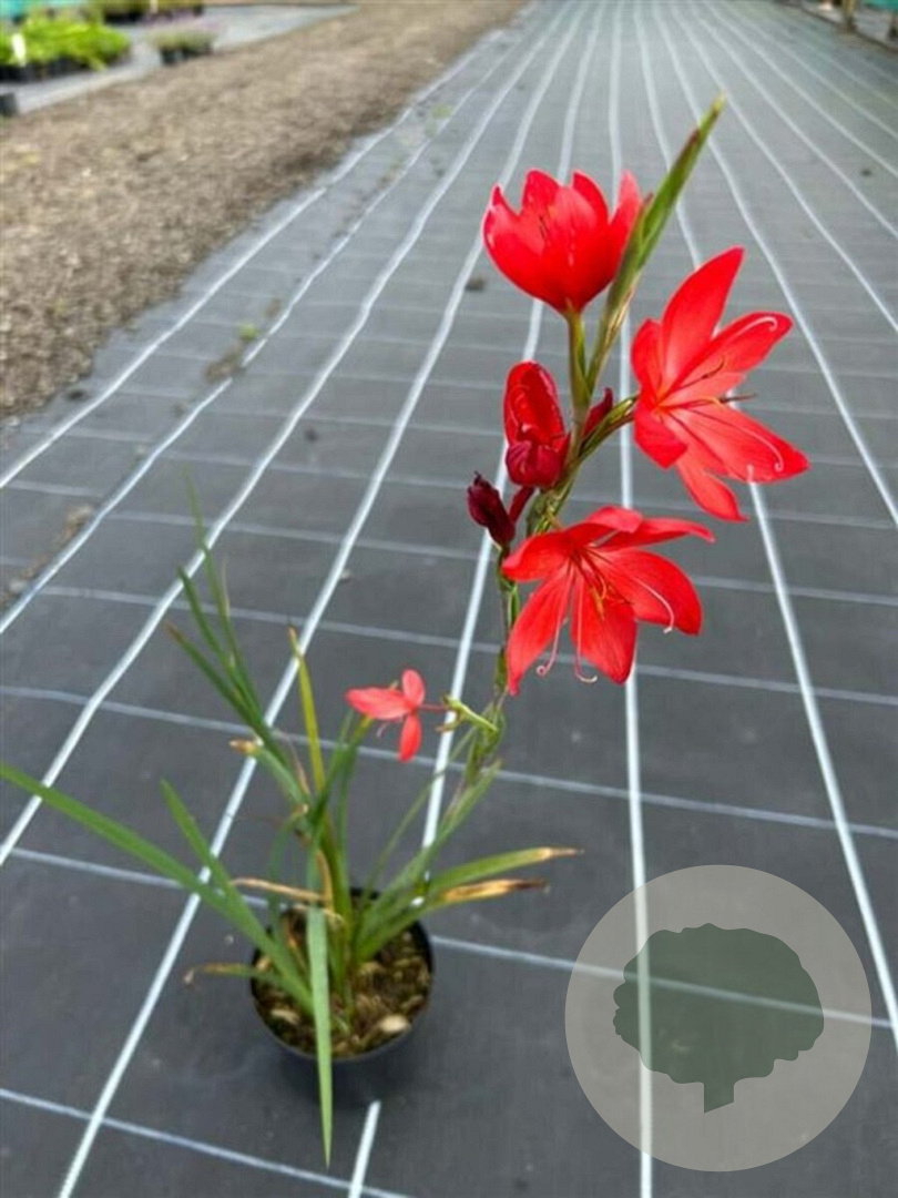 | Toelichting | De Kafferlelie (Schizostylis c. 'Major') is een prachtige plant met rode bloemen die bloeien van augustus tot oktober. Deze plant gedijt goed in zon en halfschaduw op lichte klei, neutrale of voedselrijke grond. Ideaal voor een kleurrijke toevoeging aan je tuin! |