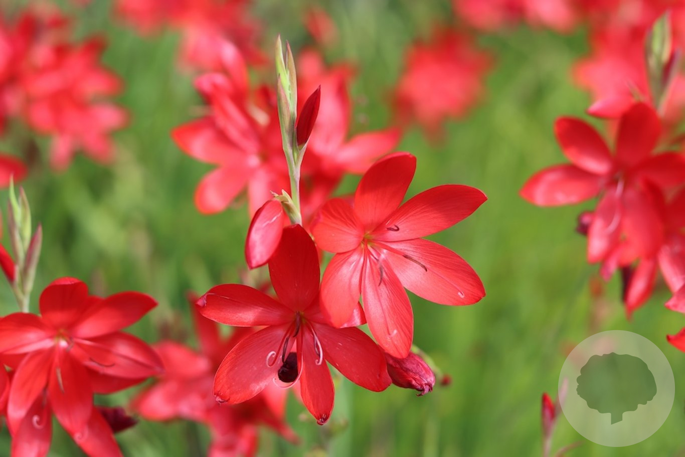 ToelichtingDe Kafferlelie (Schizostylis coccinea 'Major') is een prachtige plant met rode bloemen die bloeien van augustus tot oktober. Deze plant gedijt goed in zon en halfschaduw op lichte klei, neutrale grond of goede tuingrond.