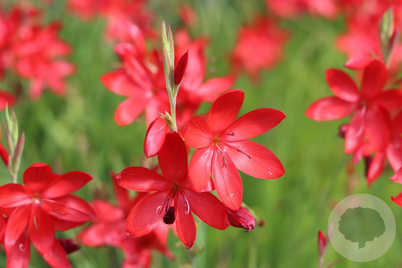 | Toelichting | De Kafferlelie (Schizostylis coccinea 'Major') is een prachtige plant met rode bloemen die bloeien van augustus tot oktober. Deze plant gedijt goed in zon en halfschaduw op lichte klei, neutrale grond of goede tuingrond. |