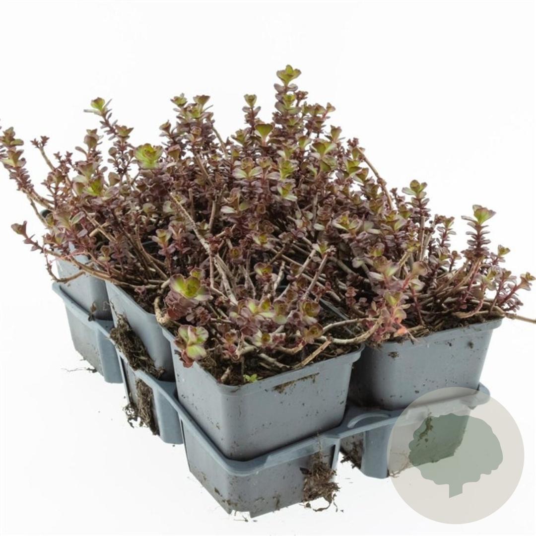 ToelichtingSedum spurium 'Purple Winter' is een laagblijvende vetplant met roze bloemen en groen blad. Bloeiend van juni tot augustus en geschikt voor zonnige plekken in zand- en neutrale grond. Perfect voor rotstuinen en borders.