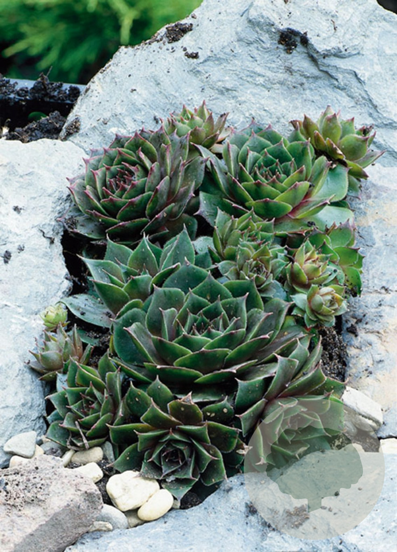 ToelichtingHuislook (Sempervivum 'Feldmaier') is een laagblijvende succulent met roze bloemen en groen blad. Bloeit in juni-juli en gedijt goed in de zon op zandgrond, klei of neutrale grond. Perfect voor rotstuinen en borders.