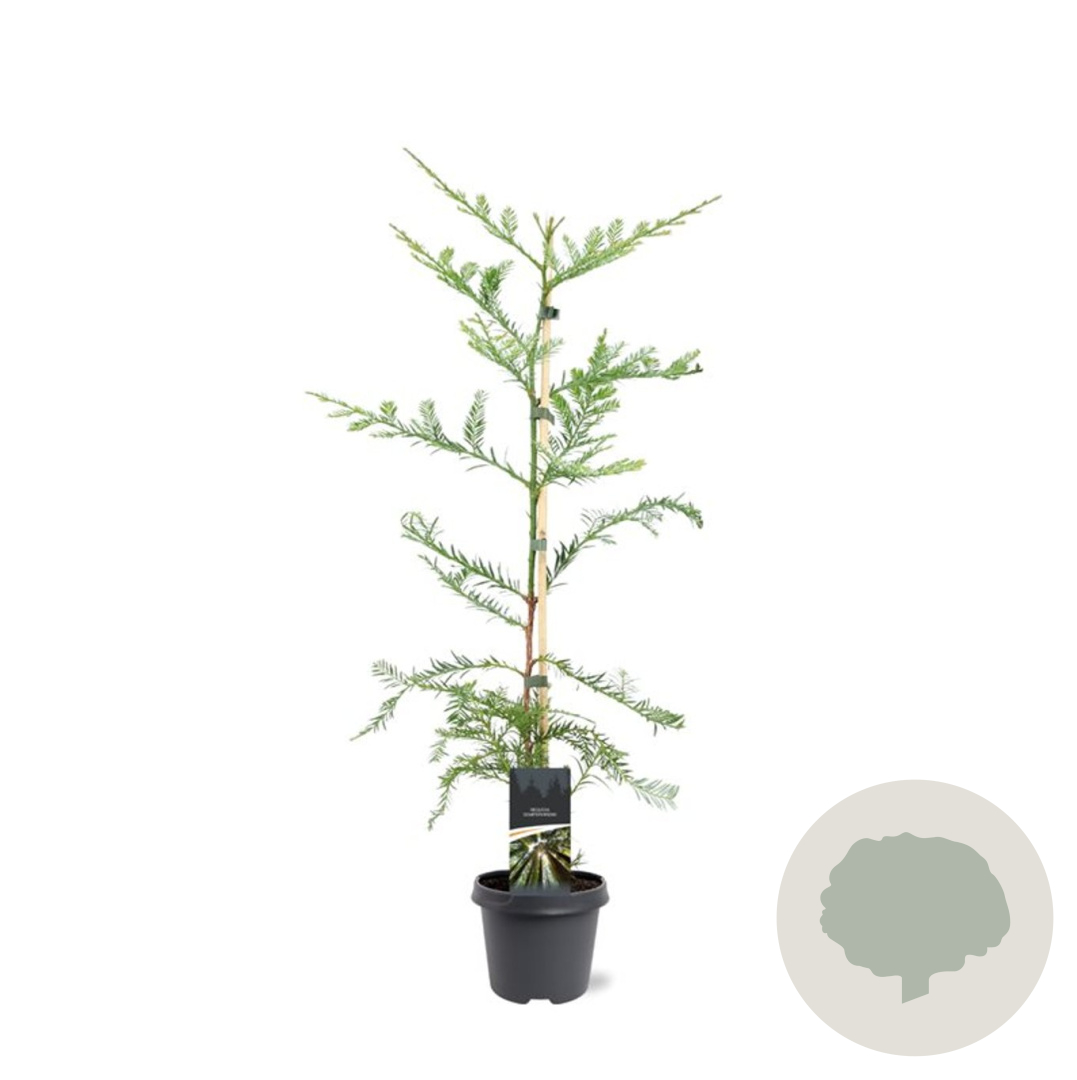 | Toelichting | De Kustmammoetboom, ook wel Sequoia sempervirens genoemd, is een imposante naaldboom met donkergroene bladeren. Deze boom kan een hoogte bereiken van 90 tot 120 meter en gedijt goed in zonnige omstandigheden op zandgrond met een zure en voedselarme bodem. |