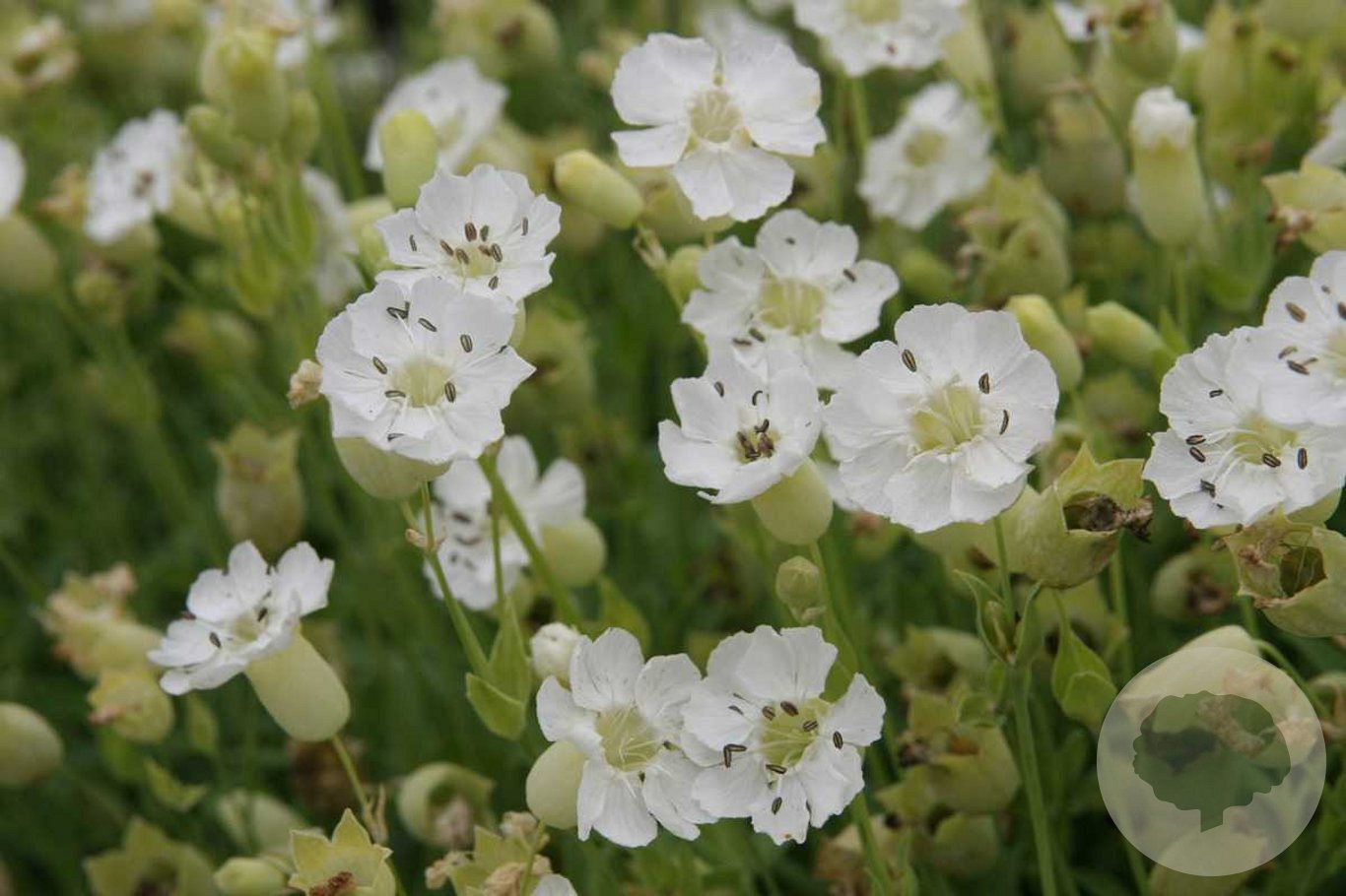 | Toelichting | Silene, ook bekend als 'Weisskehlchen', is een charmante plant met witte bloemen en groen blad. Deze plant bloeit van mei tot juli en gedijt goed in zonnige tot halfschaduwrijke plekken met lichte klei en neutrale grond. Perfect voor een kleurrijke tuin! |