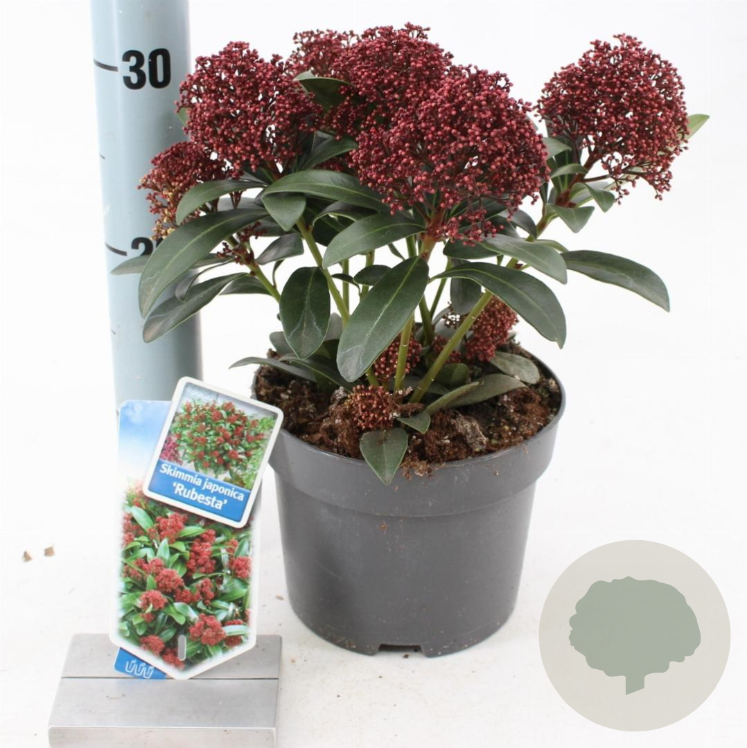 | Toelichting | Skimmia is een prachtige struik met donkergroen blad en witte bloemen in april en mei. Perfect voor een halfschaduwrijke plek met zure en humusrijke grond. Bereikt een hoogte van 100 cm en heeft een gematigde stikstofbehoefte. |