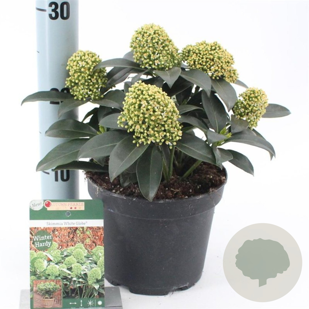 | Toelichting | Skimmia is een prachtige wintergroene struik met witte bloemen in de lente. De donkergroene bladeren en compacte groei maken het een ideale plant voor in de halfschaduw op zure, humusrijke grond. Perfect voor een groenblijvende tuin! |