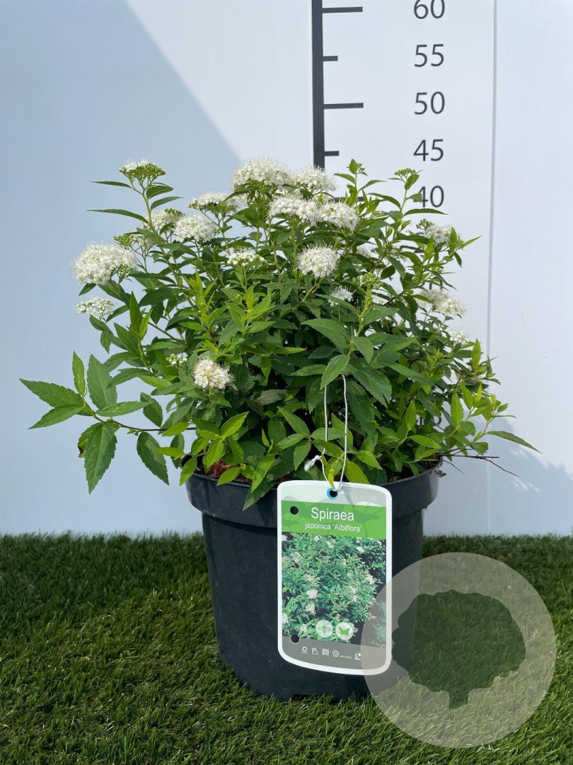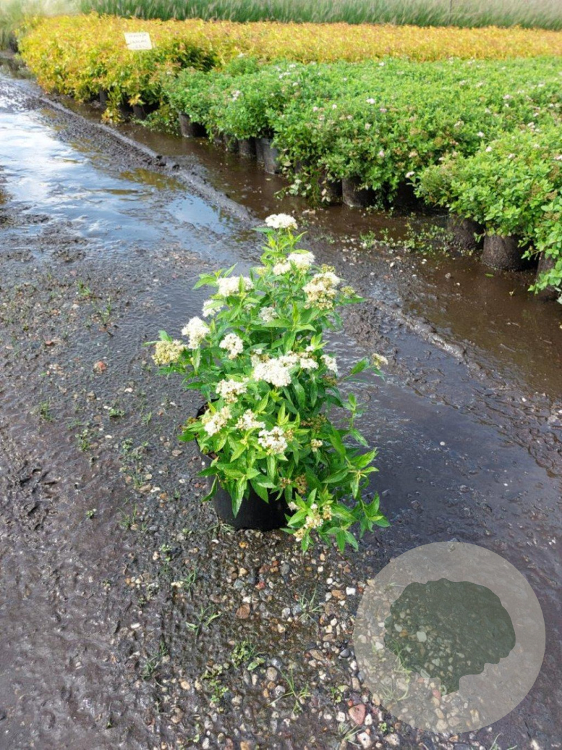 | Toelichting | Spiraea, ook wel spierstruik genoemd, is een prachtige heester met witte bloemen in de periode mei-juni. Deze plant wordt ongeveer 150 cm hoog en gedijt goed in zon en halfschaduw op lichte klei, neutrale grond of goede tuingrond. |