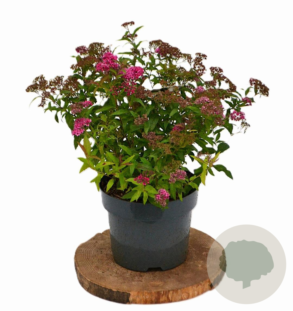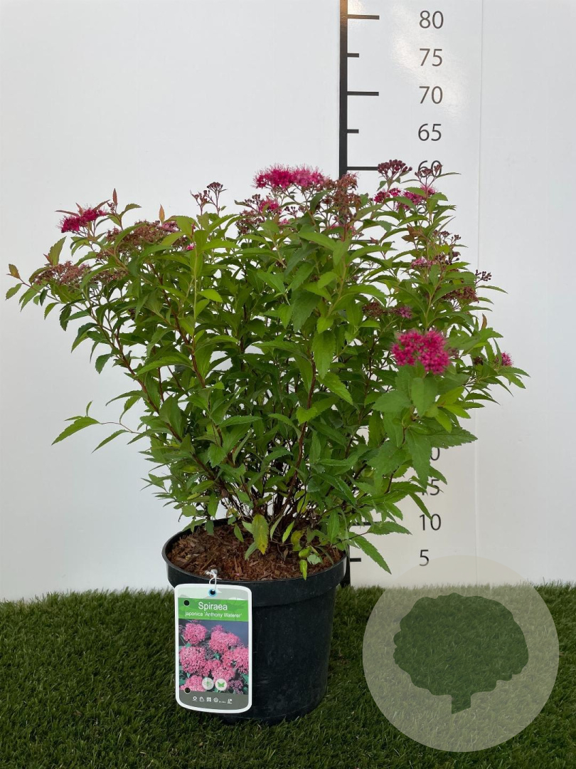 | Toelichting | Spiraea japonica 'Anthony Waterer' is een prachtige struik met roze bloemen die bloeien van juni tot augustus. De plant wordt ongeveer 100 cm hoog en gedijt goed in zon en halfschaduw op neutrale, goede tuingrond met humus. |