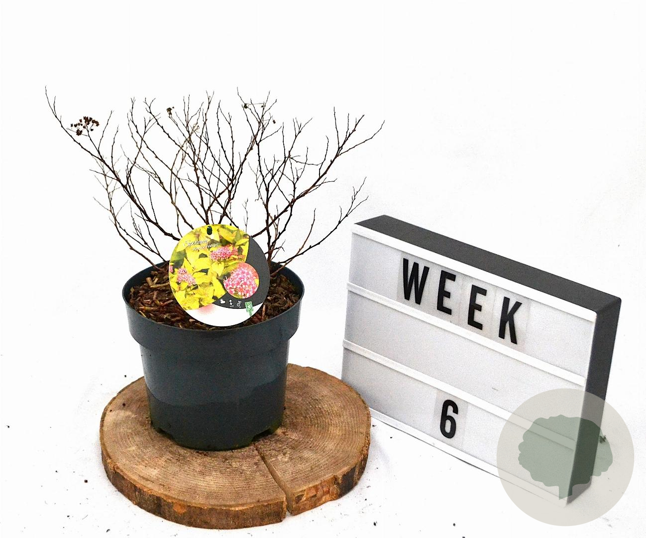 | Toelichting | Spiraea, ook wel bekend als Spierstruik, is een prachtige heester met rode bloemen en groen blad. Deze plant bloeit in de zomermaanden juni en juli en gedijt goed in zonnige tot halfschaduwrijke standplaatsen met neutrale, goede tuingrond. |