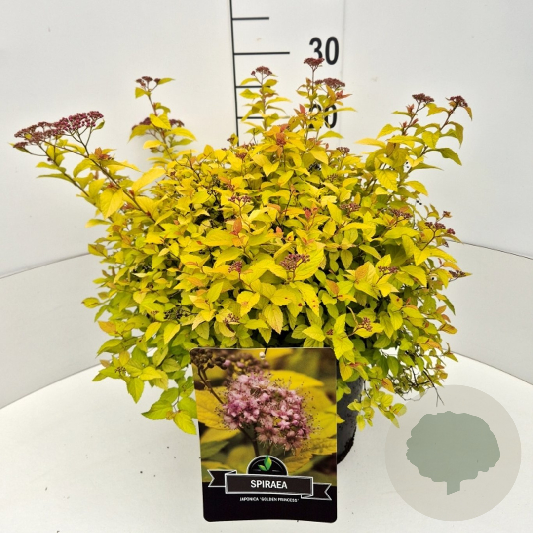 | Toelichting | Spiraea, ook wel bekend als Spierstruik, is een prachtige heester met roze bloemen en geel blad. Deze compacte plant bloeit in de lente en gedijt goed in zon en halfschaduw op neutrale, voedselrijke grond. |