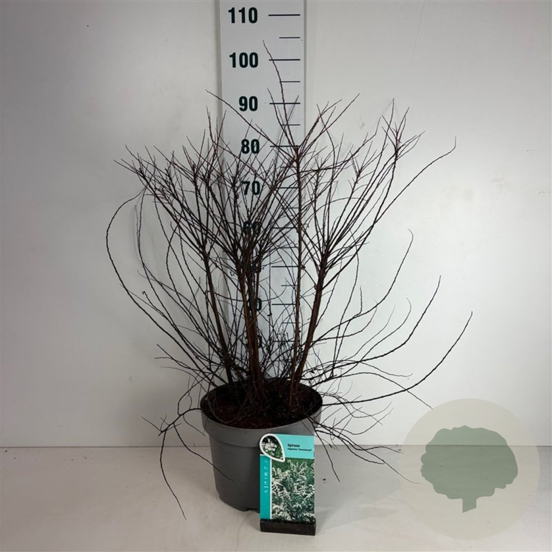 | Toelichting | Spiraea, ook wel spierstruik genoemd, is een prachtige heester met witte bloemen in de periode mei-juni. Deze Spiraea 'Snowmound' wordt ongeveer 100 cm hoog en gedijt goed in zon en halfschaduw op lichte klei en neutrale grond. |