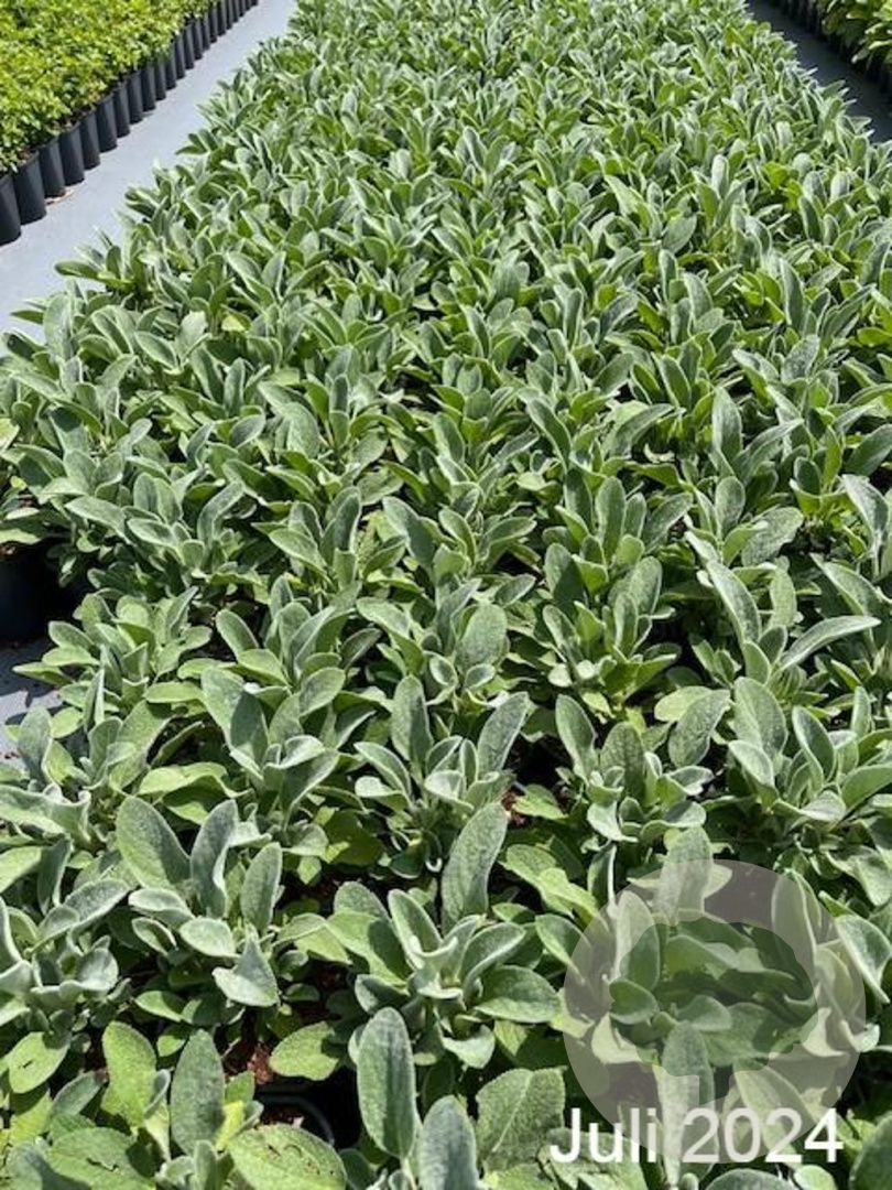 | Toelichting | Ezelsoor (Stachys byzantina) is een prachtige bodembedekker met zacht grijze bladeren en paarse bloemen. Deze plant bloeit van juni tot augustus en gedijt goed in zon en halfschaduw op neutrale, goede tuingrond met humus. |