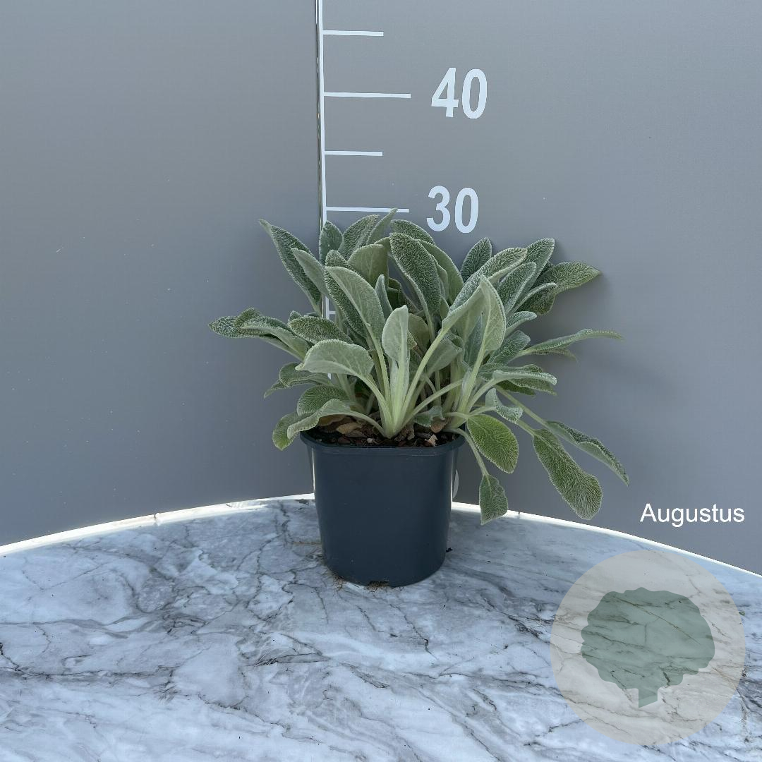 | Toelichting | Ezelsoor (Stachys byzantina 'Silver Carpet') is een prachtige bodembedekker met zilvergrijs blad en paarse bloemen. Deze plant bloeit van juni tot augustus en gedijt goed in zon en halfschaduw op goede tuingrond of humusrijke grond. |