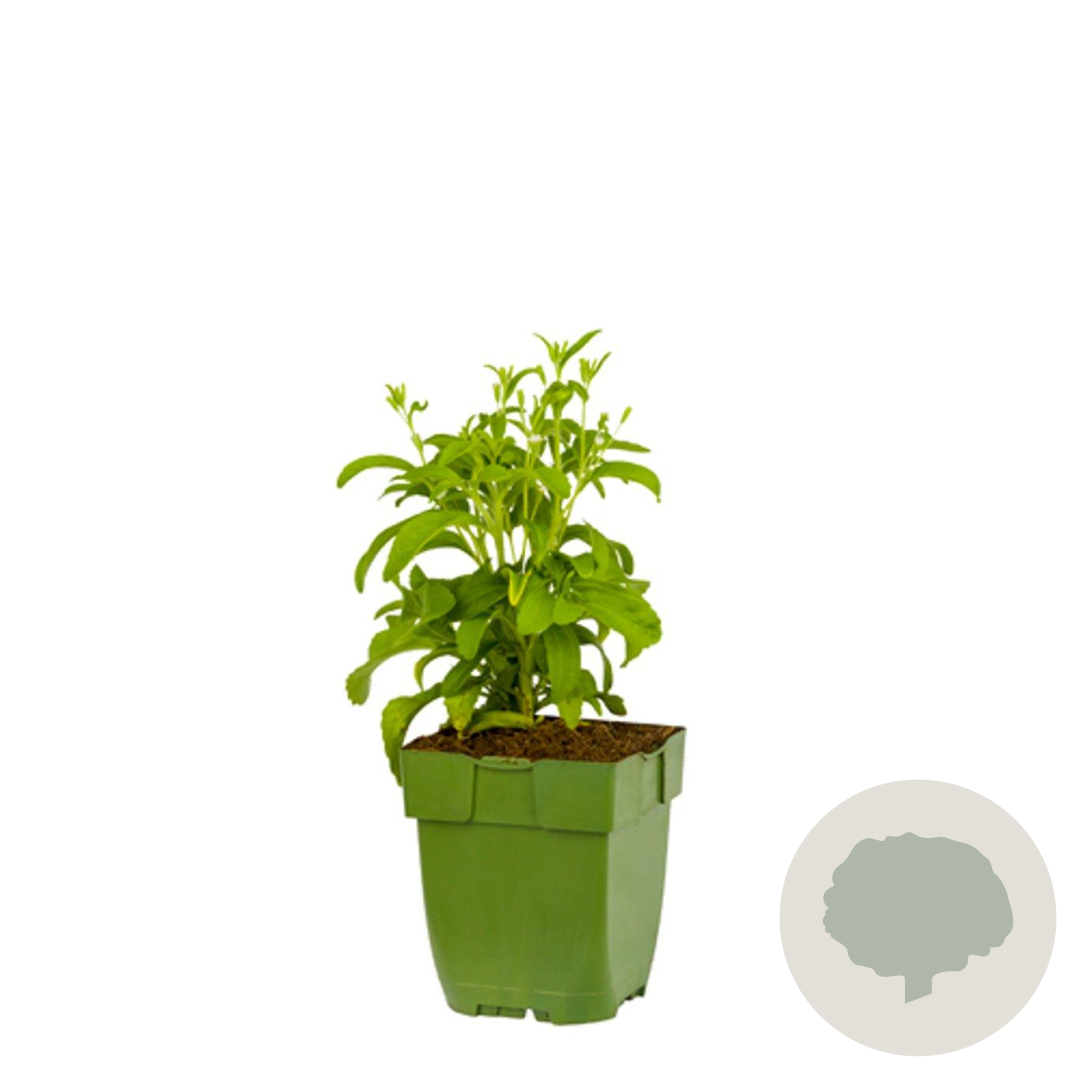 | Toelichting | Stevia is een laagblijvende plant met groene bladeren en witte bloemen. Het is een zoete plant die gebruikt kan worden als natuurlijke suikervervanger. Plant Stevia in de zon of halfschaduw in lichte klei, zure of humusrijke grond voor een goede groei. |