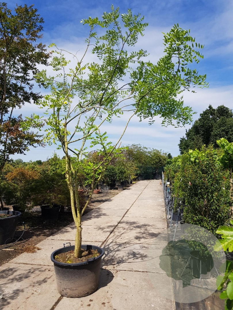 Toelichting | De Japanse honingboom is een prachtige boom met witte bloemen en groen blad. Hij bloeit in de zomermaanden juli en augustus en gedijt goed in zon en halfschaduw op neutrale, goede tuingrond met humus. |