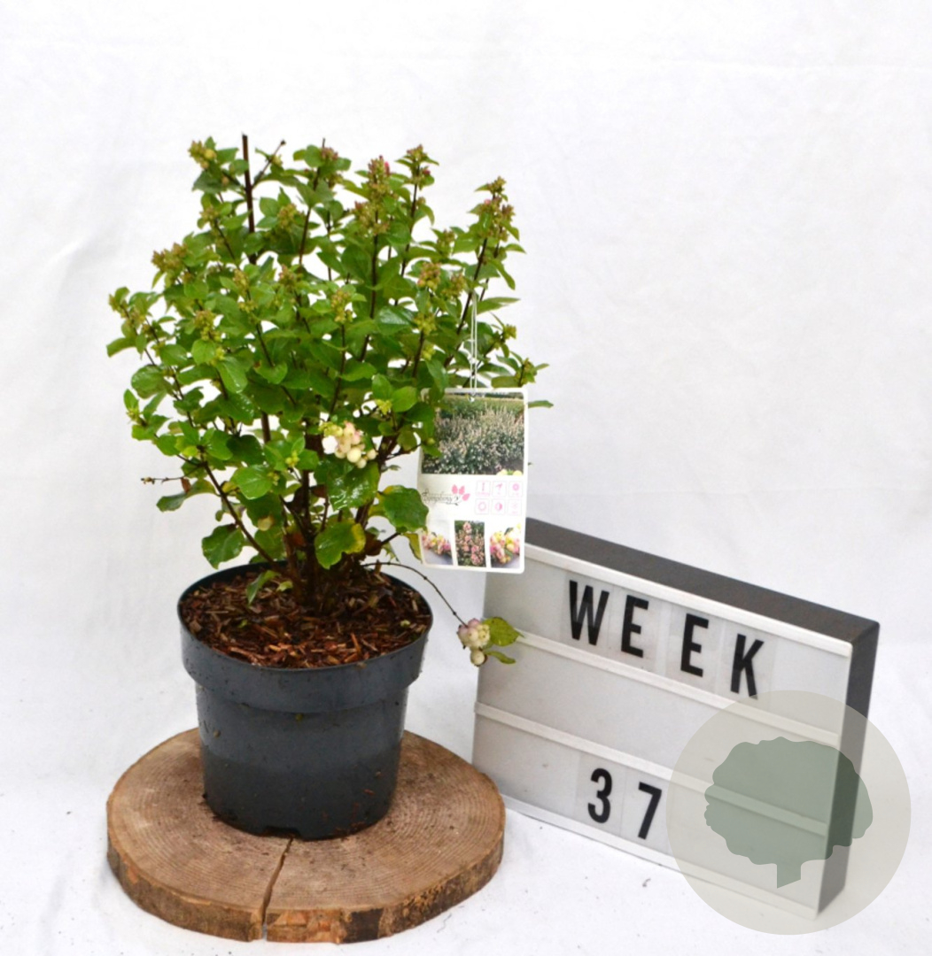 ToelichtingDe Symphoricarpos d. Rave, ook wel bekend als Sneeuwbes, is een prachtige struik met roze bloemen en groen blad. Deze struik bloeit in de zomermaanden juni en juli en gedijt goed in zonnige tot halfschaduwrijke omgevingen met zandgrond, lichte klei of neutrale grond.