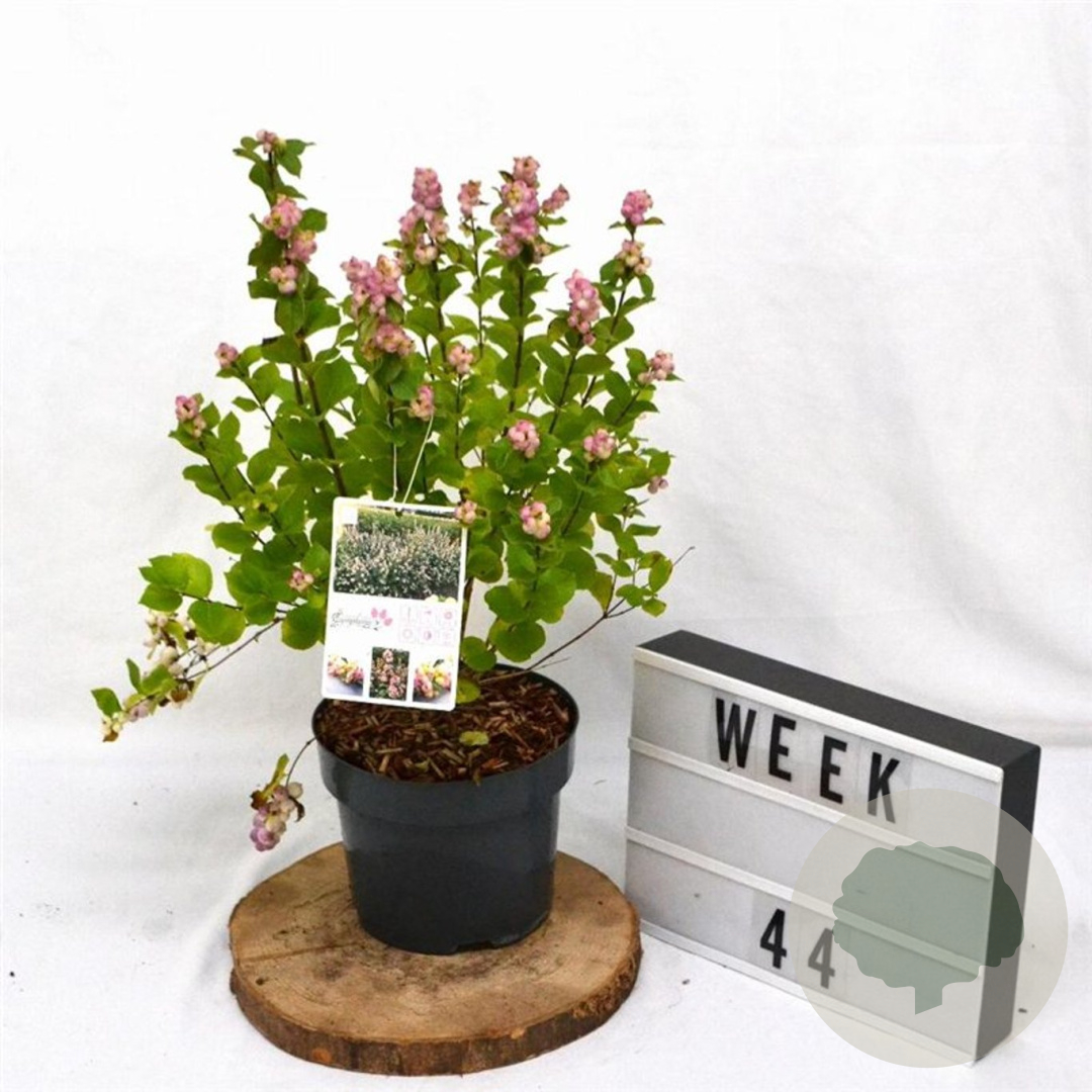 ToelichtingDe Sneeuwbes Symphony Rave is een compacte struik met roze bloemen en groen blad. Bloeit in juni en juli op zonnige tot halfschaduwrijke plekken in lichte klei en neutrale, voedselrijke grond. Bereikt een hoogte van 80 cm.