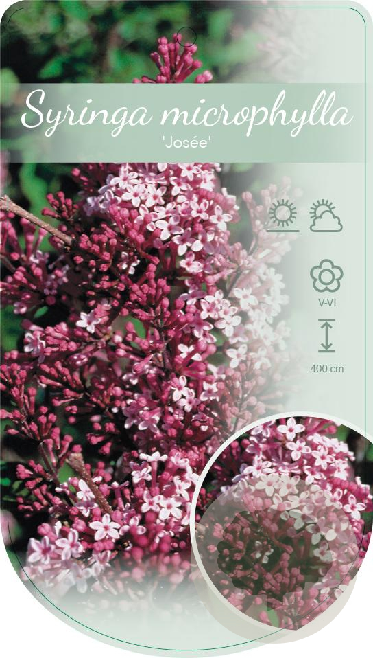 | Toelichting | De Sering 'Josée' is een prachtige struik met roze bloemen die bloeien in mei en juni. Deze struik gedijt het beste in de zon tot halfschaduw op neutrale, goede tuingrond. Ideaal voor een kleurrijke toevoeging aan je tuin! |