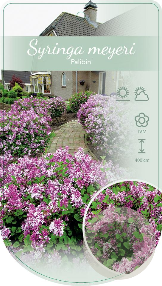 | Toelichting | De Dwergsering (Syringa meyeri 'Palibin') is een compacte struik met lila bloemen die bloeien in mei - juni. Deze sierlijke plant wordt ongeveer 150 cm hoog en gedijt goed in zonnige tot halfschaduwrijke plekken met lichte klei en neutrale grond. |