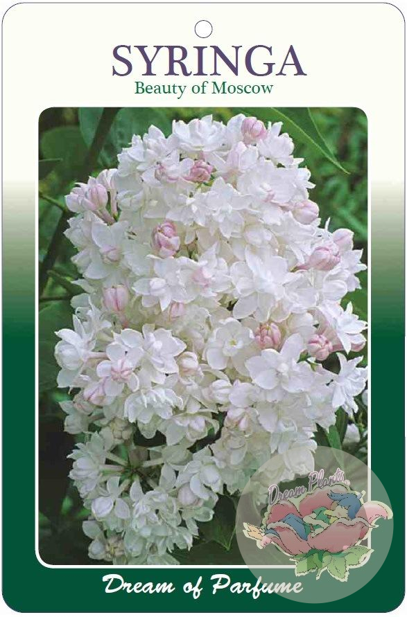 | Toelichting | De Sering Beauty of Moscow is een prachtige struik met witte bloemen en een vleugje paars in mei - juni. Deze sering houdt van een zonnige tot halfschaduwrijke standplaats en gedijt goed in neutrale, goede tuingrond met humus. |