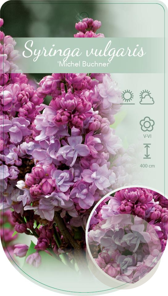 | Toelichting | De Sering 'Michel Buchner' is een prachtige heester met paarse bloemen die bloeien in mei en juni. Deze plant wordt ongeveer 200 cm hoog en gedijt goed in zonnige tot halfschaduwrijke standplaatsen met neutrale tot humusrijke grond. |