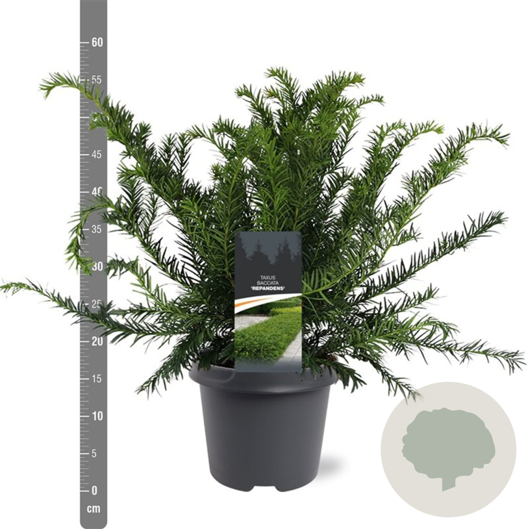 | Toelichting | De kruipende taxus (Taxus baccata 'Repandens') is een langzaam groeiende bodembedekker met donkergroene naalden. In maart en april bloeit deze plant met gele bloemen. Perfect voor zonnige tot halfschaduwrijke plekken in neutrale of zandgrond. |