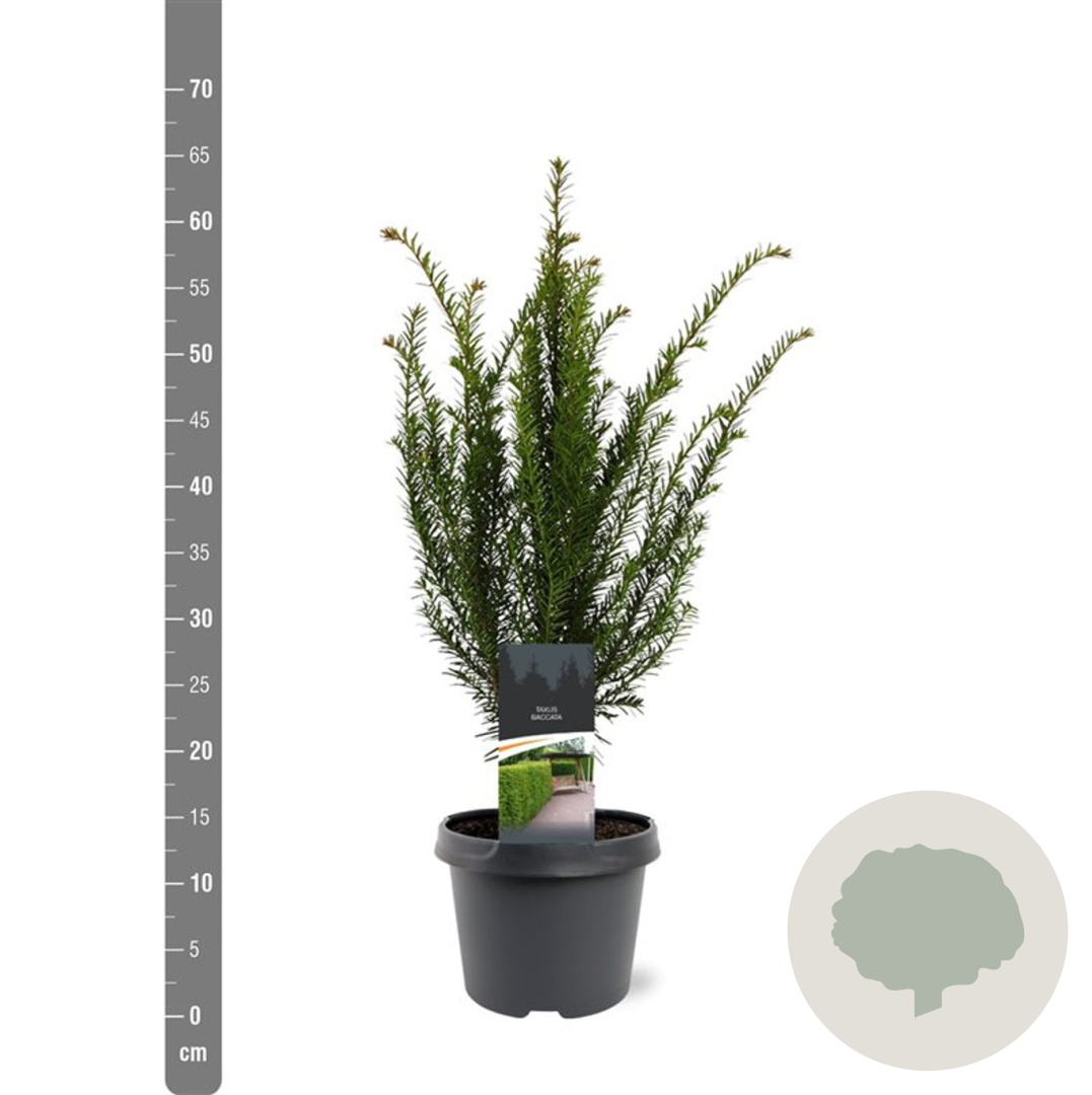 | Toelichting | De Taxus baccata, ook wel bekend als de Venijnboom, is een inheemse plant met donkergroene naalden en gele bloemen in maart - april. Deze plant gedijt goed in zon en halfschaduw op diverse grondsoorten. De volwassen hoogte is ongeveer 300 cm. |