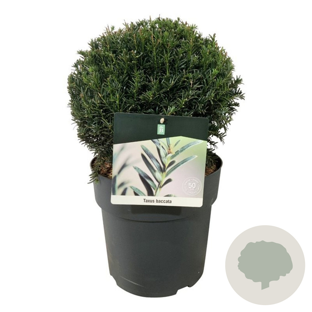 | Toelichting | De Taxus baccata, ook wel bekend als de Venijnboom, is een inheemse plant met donkergroene naalden en gele bloemen in maart - april. Deze plant gedijt goed in zon en halfschaduw op diverse grondsoorten. De volwassen hoogte is ongeveer 300 cm. |