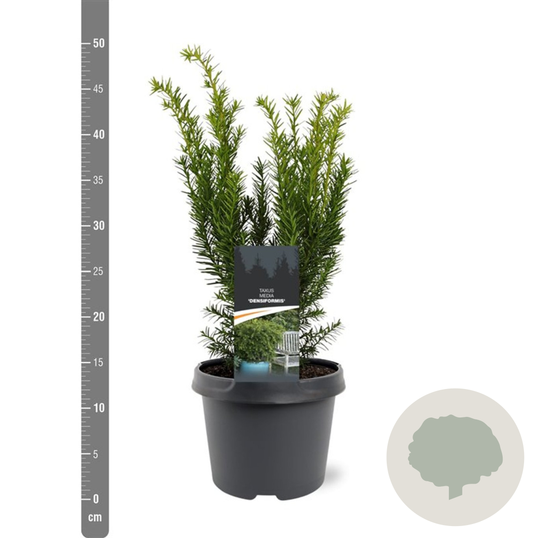 | Toelichting | De Taxus media 'Densiformis', ook wel bekend als Venijnboom 'Densiformis', is een compacte struik met donkergroen blad. Deze plant gedijt goed in zon en halfschaduw op zandgrond, klei of neutrale grond. Perfect voor een lage haag of border. |