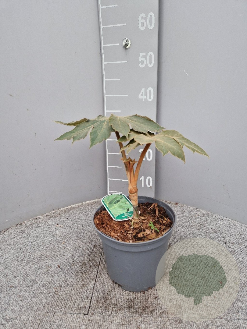 | Toelichting | De Rijstpapierplant (Tetrapanax papyrifer 'Rex') is een imposante verschijning met grote groene bladeren en witte bloemen in de zomermaanden. Deze exotische plant gedijt goed in zon en halfschaduw op neutrale, goed doorlatende tuingrond. Perfect voor een tropische touch in de tuin! |