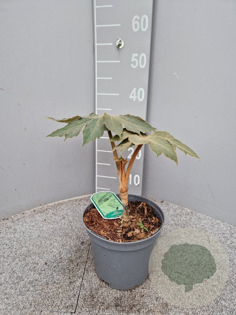 | Toelichting | De Rijstpapierplant (Tetrapanax papyrifer 'Rex') is een imposante verschijning met grote groene bladeren en witte bloemen in de zomermaanden. Deze exotische plant gedijt goed in zon en halfschaduw op neutrale, goed doorlatende tuingrond. Perfect voor een tropische touch in de tuin! |