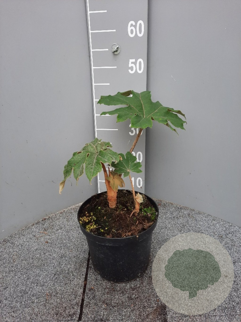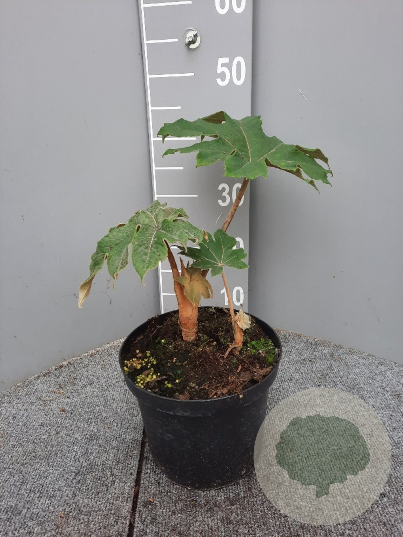 | Toelichting | De Rijstpapierplant (Tetrapanax papyrifer 'Rex') is een imposante verschijning met grote groene bladeren en witte bloemen in de zomermaanden. Deze exotische plant gedijt goed in zon en halfschaduw op neutrale, goed doorlatende tuingrond. Perfect voor een tropische touch in de tuin! |