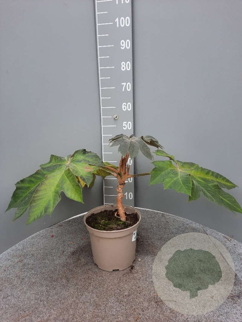 | Toelichting | De Rijstpapierplant (Tetrapanax papyrifer 'Rex') is een imposante verschijning met grote groene bladeren en witte bloemen in de zomermaanden. Deze exotische plant gedijt goed in zon en halfschaduw op neutrale, goed doorlatende tuingrond. Perfect voor een tropische touch in de tuin! |