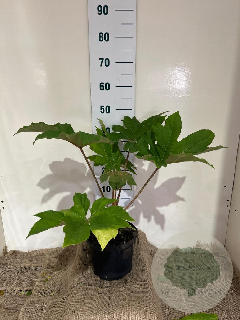 | Toelichting | De Rijstpapierplant (Tetrapanax papyrifer 'Rex') is een imposante verschijning met grote groene bladeren en witte bloemen in de zomermaanden. Deze exotische plant gedijt goed in zon en halfschaduw op neutrale, goed doorlatende tuingrond. Perfect voor een tropische touch in de tuin! |