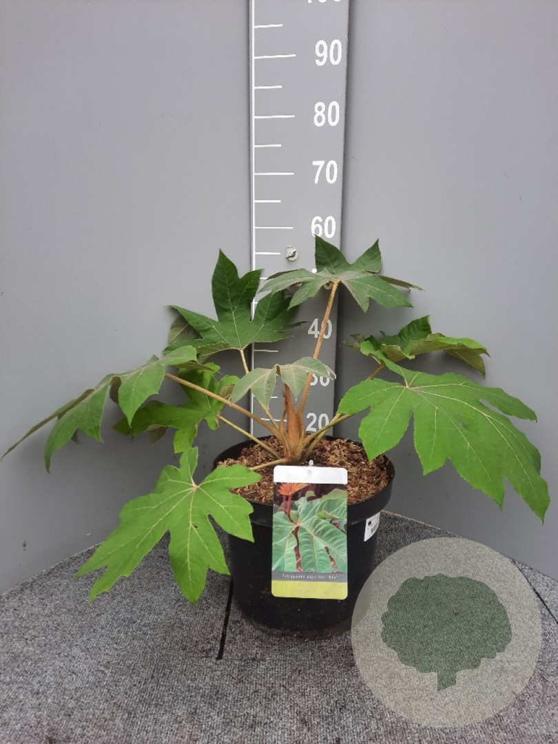 | Toelichting | De Rijstpapierplant (Tetrapanax papyrifer 'Rex') is een imposante verschijning met grote groene bladeren en witte bloemen in de zomermaanden. Deze exotische plant gedijt goed in zon en halfschaduw op neutrale, goed doorlatende tuingrond. Perfect voor een tropische touch in de tuin! |