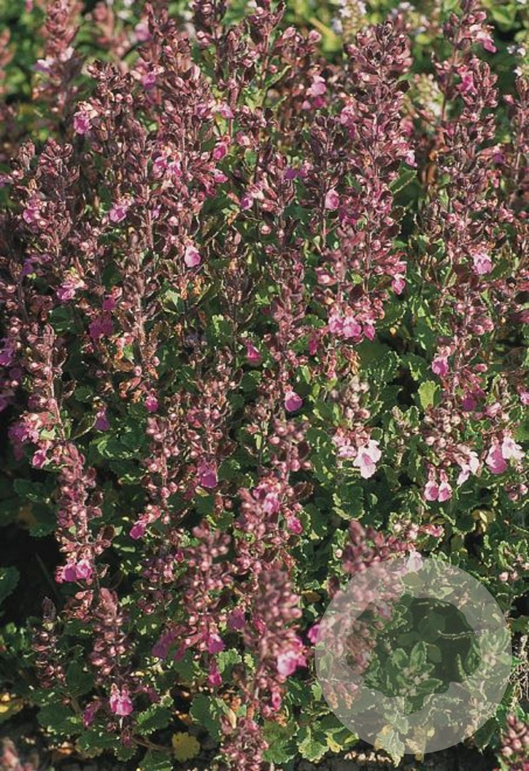 | Toelichting | De Gamander is een compacte plant met roze bloemen en groen blad. Deze plant bloeit van juni tot augustus en gedijt goed in zon en halfschaduw op zand-, klei- of neutrale grond. |